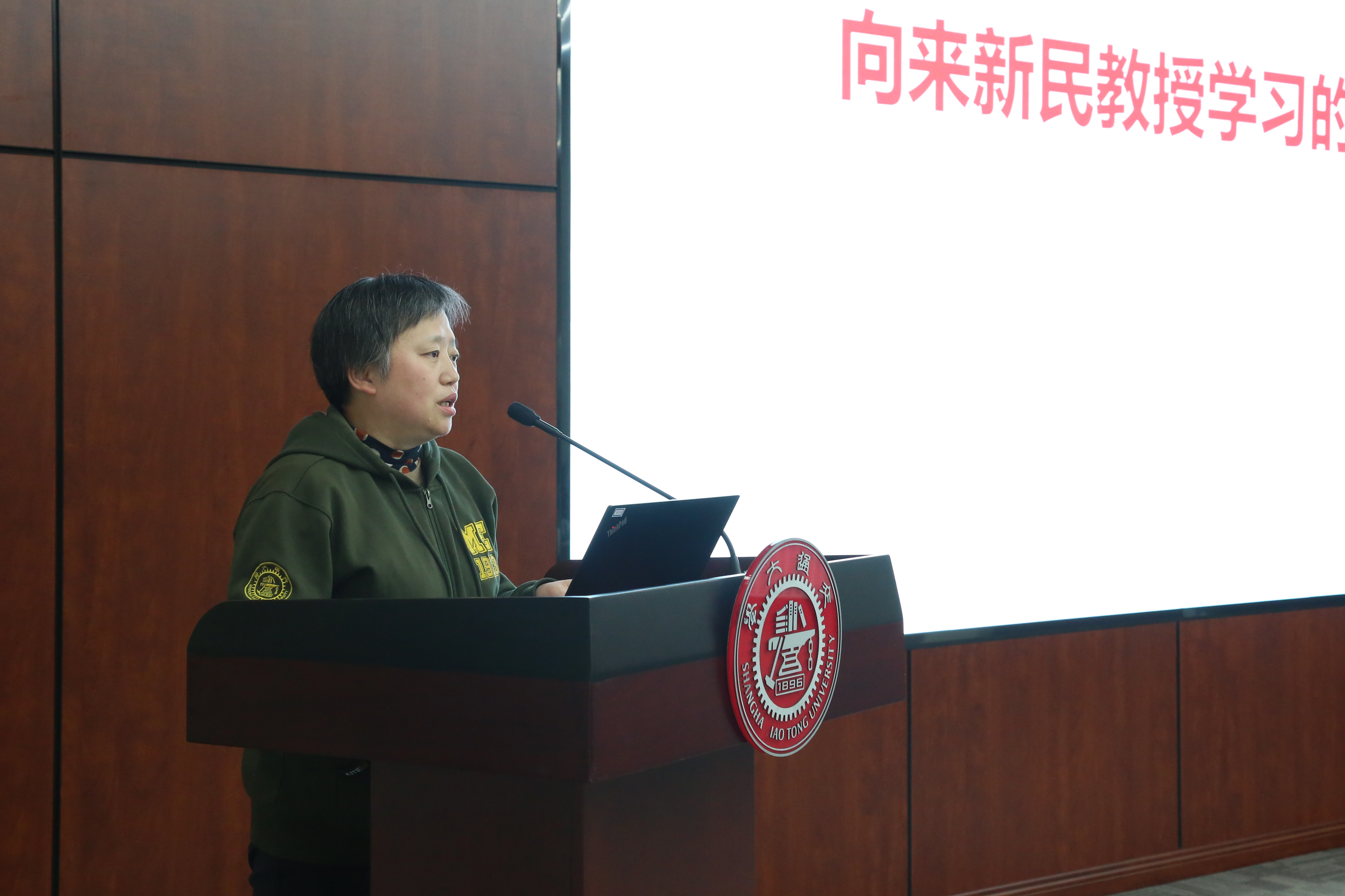 燃料电池研究所所长章俊良教授结合自己的专业研究领域,介绍了来新民教授在燃料电池关键核心技术金属双极板领域取得的成就,指出其十五年磨一剑,破解了国际难题,为燃料电池的产业化和新能源汽车的发展作出了突出贡献,要发扬他甘坐冷板凳、勇攀科研高峰的大国工匠精神;指出来新民教授甘为人梯,长期坚守教学一线,积极推动本科教学改革,注重促进学生个性化多元发展,以教育为学生增值,要学习和践行他有教无类、因材施教的教书育人理念,为科技强国建设和培养新时代拔尖创新人才贡献力量。