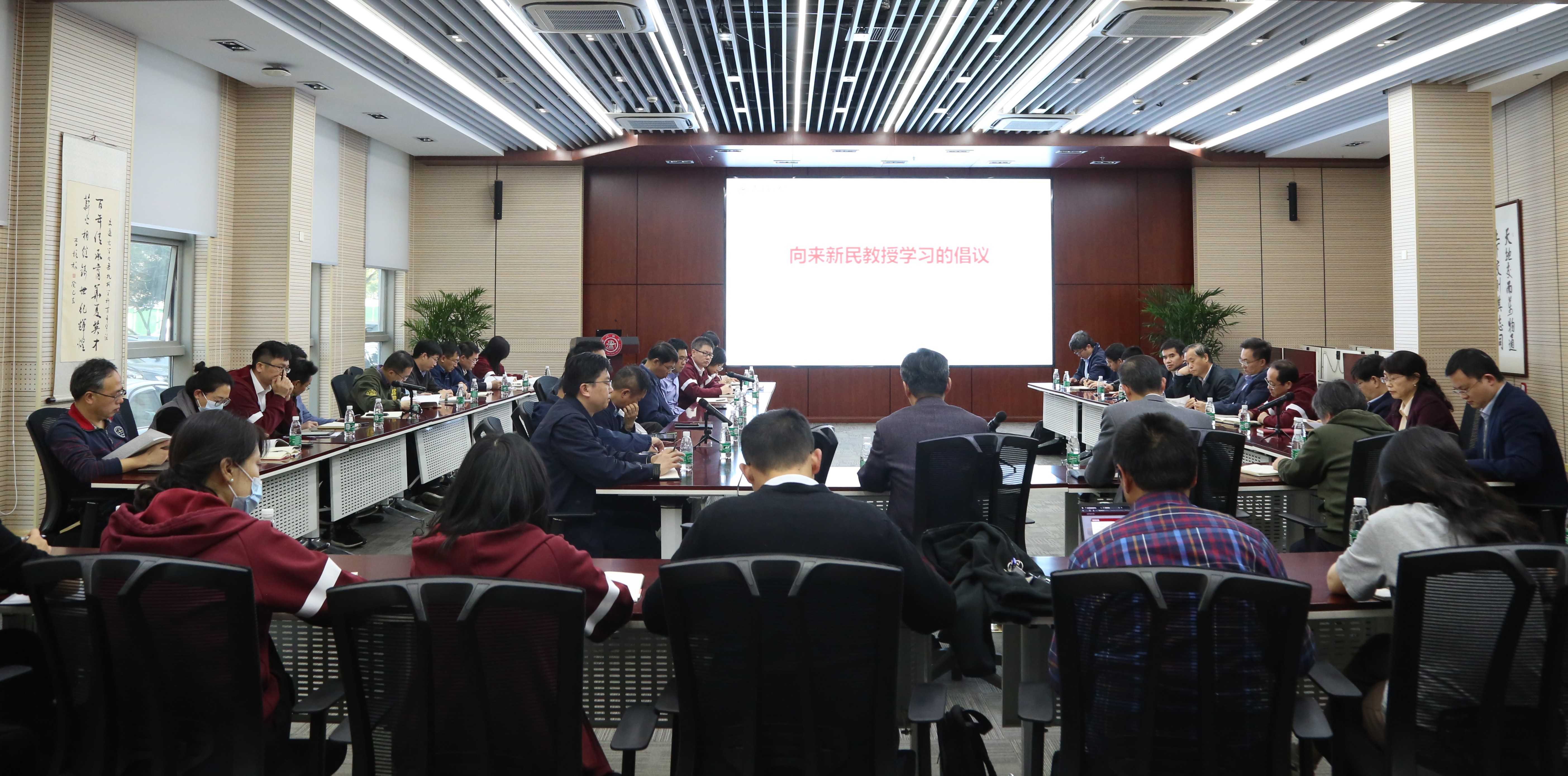 3月10日,买球官方网站开展向来新民教授学习活动。学院党政领导班子成员、系所负责人、支部书记以及机关各部门代表等40余人参加了会议。会议由学院党委书记林立涛主持。