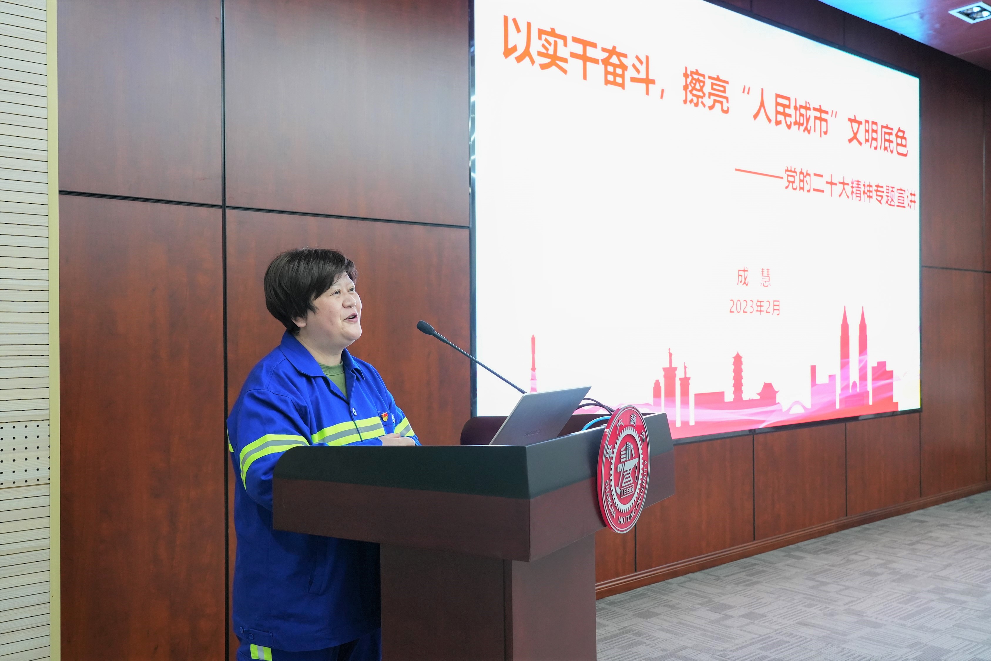本次主题党日活动,我有幸聆听了二十大党代表成慧老师的报告,作为一线的普通环卫工人,他们十几年来坚持用扫帚守护城市的市容市貌。苏河两岸的鸟语花香离不开环卫工人们的勤劳和智慧,他们在工作中满怀敬业的感情、奋斗的热情、执着的激情、服务的真情,让我深受感动。正如习近平总书记在党的二十大报告中提出的“新时代的伟大成就是党和人民一道拼出来、干出来、奋斗出来的”,我们作为交大学子要向成慧老师学习,扎根科研一线,努力为国家的科技发展贡献力量。
