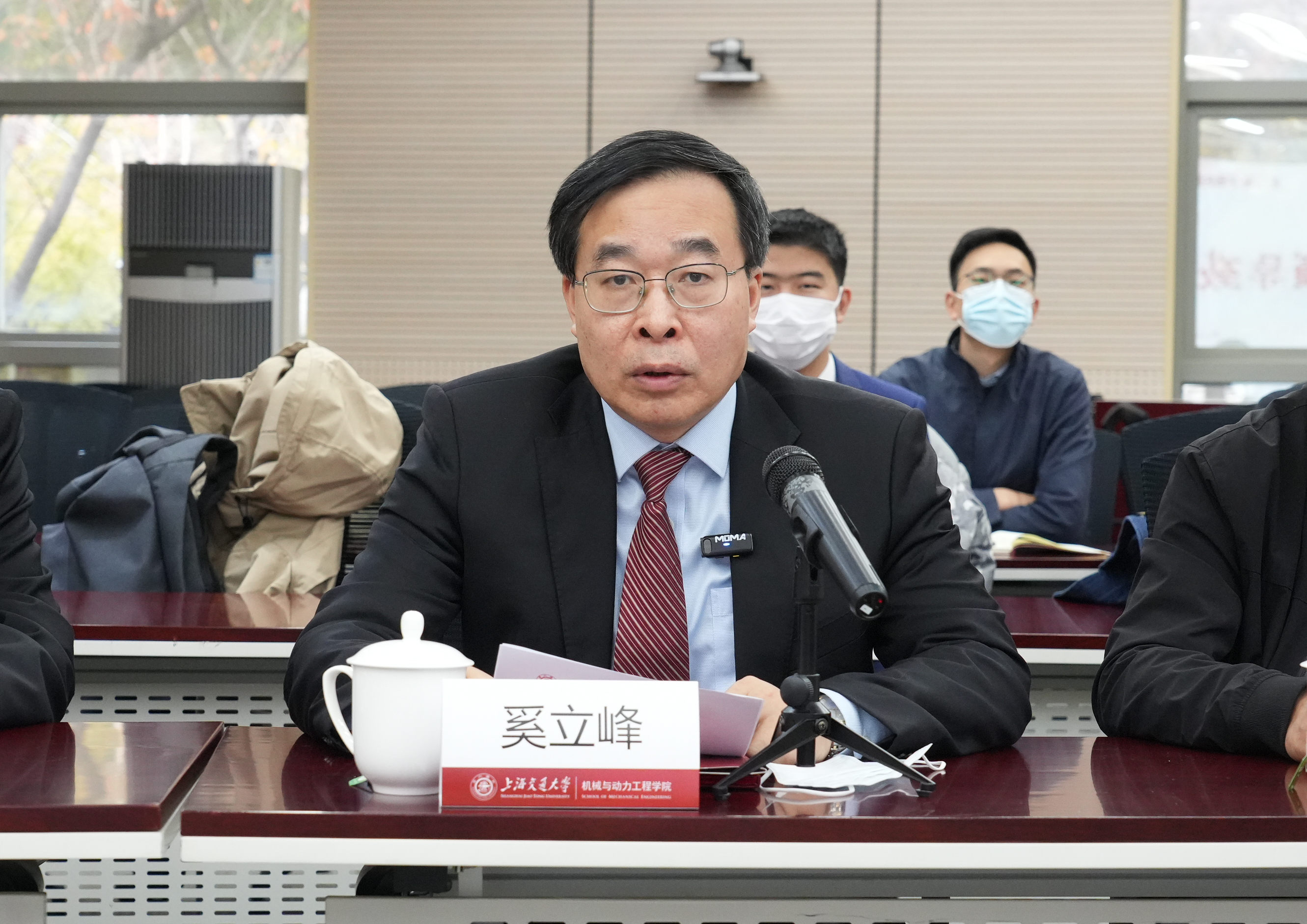 奚立峰致欢迎辞,感谢丰田纺织对学院人才培养工作的支持,回顾了十一年来双方建立的合作关系和深厚友谊,希望双方进一步拓展合作,为培养新时代工科人才共同努力、再创辉煌,同时希望获奖师生心怀感恩意识,做好本职工作,勇攀人生新高峰。