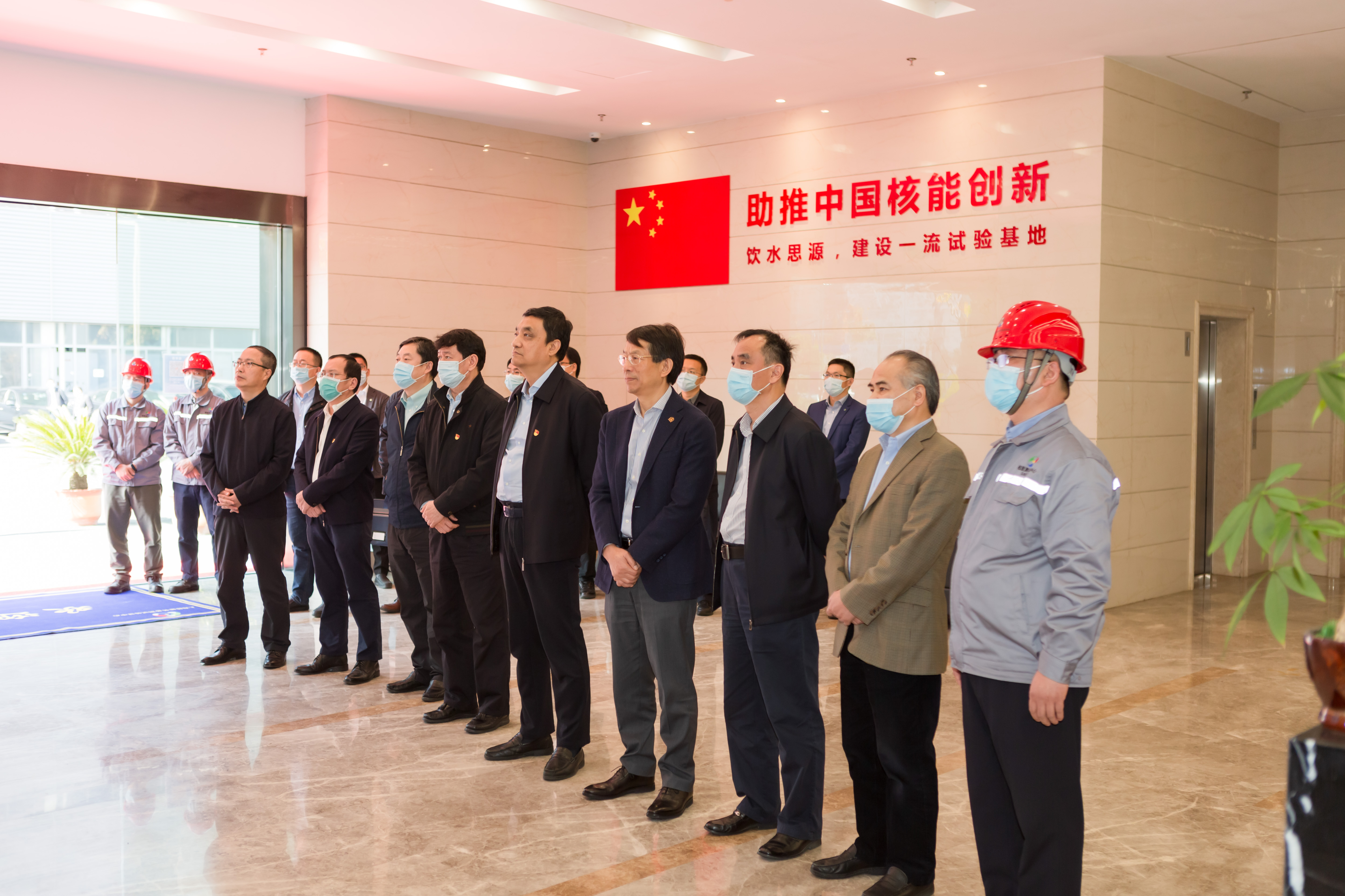 生态环境部核设施安全监管司司长、国家核安全局副局长江光,华东核与辐射安全监督站主任冯建平,华北核与辐射安全监督站副主任朱宏,国家重大专项大型先进压水堆分项总设计师、国家电投核能总工程师、国和一号总设计师郑明光,国家电投核技术总工程师刘永德,上海核工院总经理王明弹、总监严锦泉,核能测试中心董事长赵冬建,总经理、上海交大买球官方网站顾汉洋教授,副总经理何国庆、贺小明等参加此次调研。