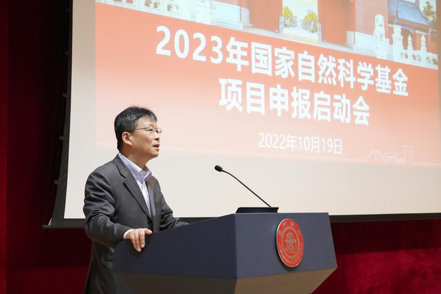 赵一新详细介绍了学校2022年国家自然科学基金申报及立项情况,肯定了学院2022年的基金申报工作,并就2023年申报工作提出了期望和要求。