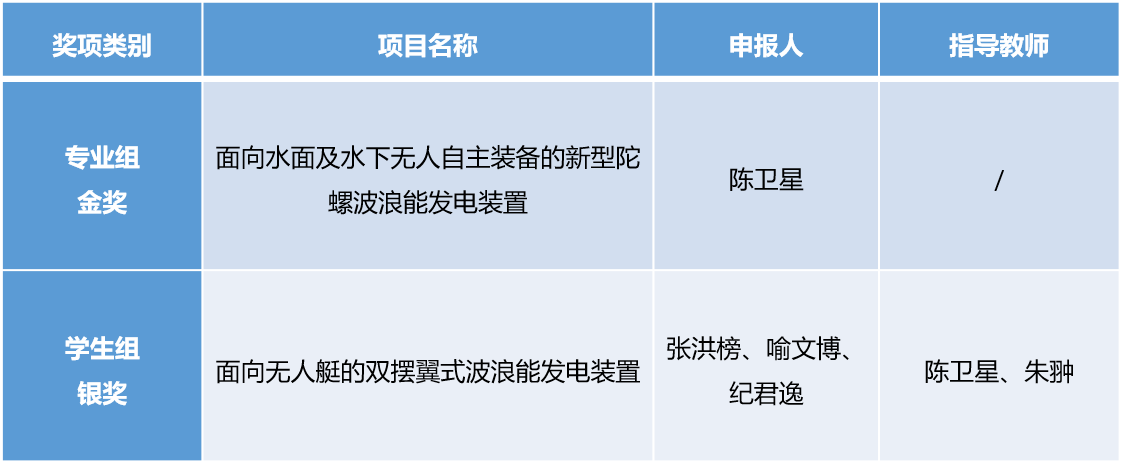 附未来水下能源动力挑战赛获奖名单:
