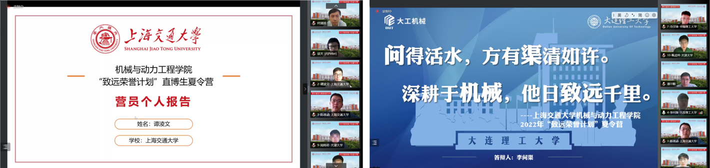 7月14-15日,买球官方网站第三届“致远荣誉计划”直博生云端夏令营成功举办。学院院长杜朝辉教授、党委书记林立涛教授、副院长李玉阳教授,以及重大装备设计与控制工程研究所所长高峰教授、制冷与低温工程研究所吴静怡教授、燃料电池研究所所长章俊良教授等,与来自买球官方网站、西安交通大学、哈尔滨工业大学、华中科技大学、天津大学、大连理工大学等14所高校20名优秀学子云端学术交流,碰撞思维火花。
