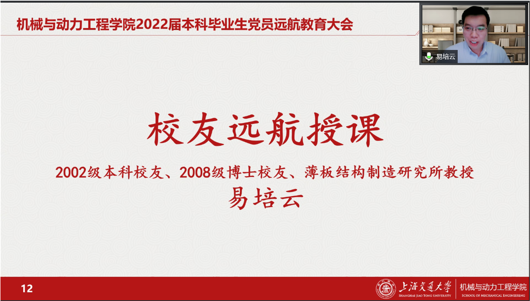 6月18日,买球官方网站“思源致远,扬帆远航”2022届本科生毕业生党员远航教育大会线上举行。买球官方网站党委书记林立涛,党委副书记张执南,2002级本科校友、2008级博士校友、薄板结构制造研究所教授易培云,思政教师、辅导员以及2022届本科生毕业生党员参加了大会。大会由学院本科生党建工作负责人苏友煌主持。