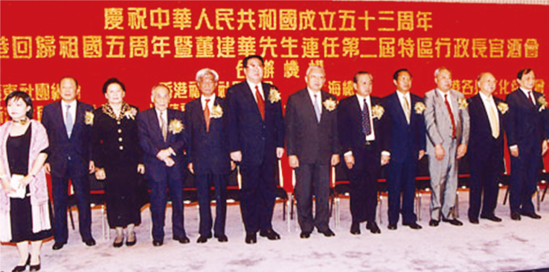 2002年,胡法光(左二)在庆祝中华人民共和国成立53周年、香港回归祖国5周年暨董建华先生连任特区首长酒会上