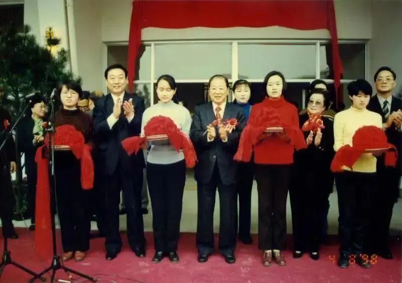 1998年4月8日,上海市副市长周慕尧(左二)和胡法光(左四)在光明体育场落成典礼上剪彩