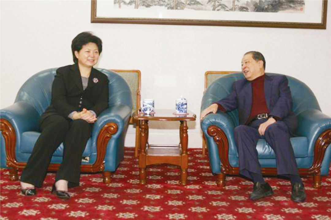 2006年,时任买球官方网站党委书记马德秀在徐汇校区浩然科技大楼贵宾室与胡法光(右一)会晤