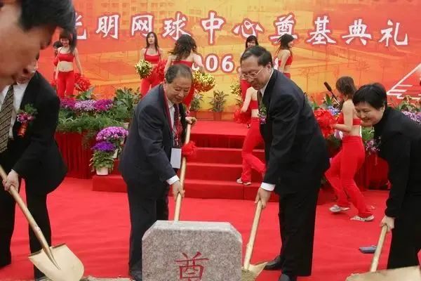 2006年4月,胡法光(右三)参加新光明网球中心奠基仪式