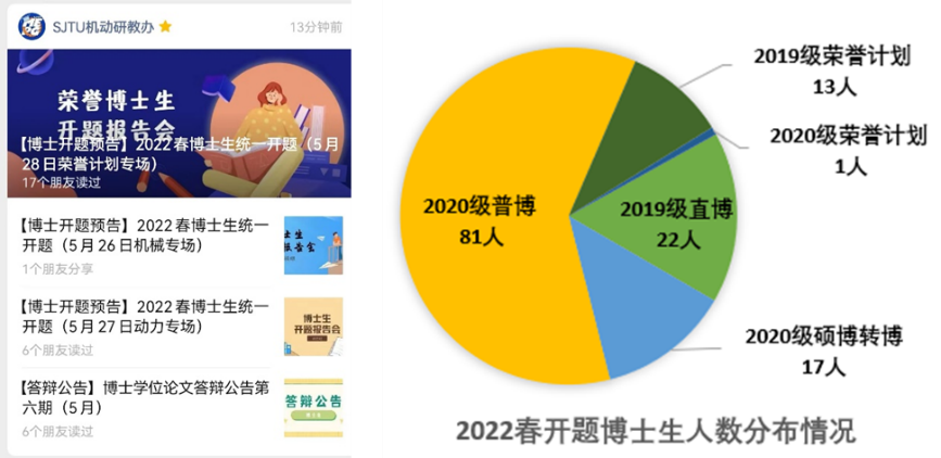 为进一步规范博士生培养的过程管理,激发学生自律性,增强朋辈引导学习效果,营造“公平、公正、公开”的学术自治文化氛围,学院自2019年9月起开始施行博士生统一开题报告会,每学年统一组织2次。博士生统一开题将博士学位论文质控点前移,有助于保障学位论文进度,切实提升博士生培养质量。