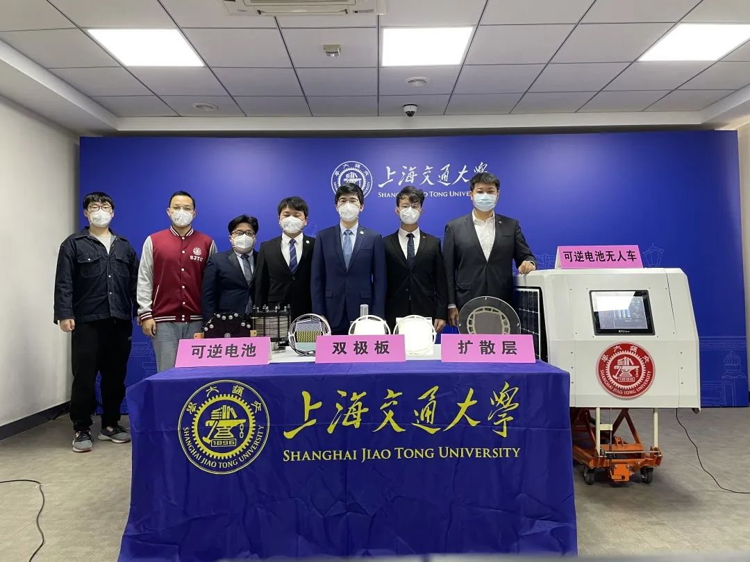 一体式可逆燃料电池是一种新型能源装置,将燃料电池和电解池一体化为一个电池,正向耗氢发电,反向电解产氢,具有高能量密度、长续航时间等优势,在无人作战系统、航空航天、电网调峰等领域有广泛应用前景。本项目针对一体式可逆燃料电池无法高效兼顾发电和电解两种相反工作模式的问题,通过创新设计“双场错排”的极板新构型、“亲疏分区”的扩散层新结构和“分级调控”的吹扫新策略,构建了水和气的独立传输通道,同时实现了发电和电解模式下的水气畅流,大幅提升了一体式可逆燃料电池的双向效率;在此基础上,搭建了以一体式可逆燃料电池为核心的无人车动力系统,大幅提升无人车续航时间,在未来无人作战平台、航空航天设备能源、电网调峰等领域具有广泛的应用前景。