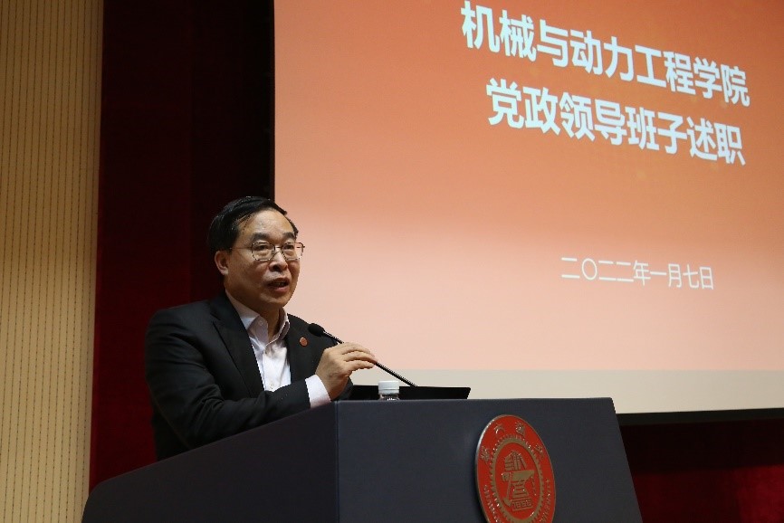 院长杜朝辉作学院领导班子工作报告。2021年,学院积极推进各项重点工作有效落实,在党的建设、三全育人、师资建设、科学研究、实验室建设等方面取得了显著成效,亮点突出,他感谢全体教师为学院发展所做的努力,并提出新一年的主要工作:以立德树人为根本,深化培养模式改革,加强学生专业情怀教育,持续提升人才培养质量;多措并举,不拘一格引进和培养青年人才,营造有利于教师潜心治学、开展高水平教学科研的环境;推动学科交叉,开展原创性的基础研究,服务国家重大战略需求,在国家级奖项上取得新突破。今年是建院二十周年,从“创建世界知名学院”到“创建世界一流学院”,凝结了师生的心血和汗水,新工程馆建设的启动为大家提供了良好的育人、科研环境,希望大家团结一心,努力奋斗,推动学院发展再上新台阶。