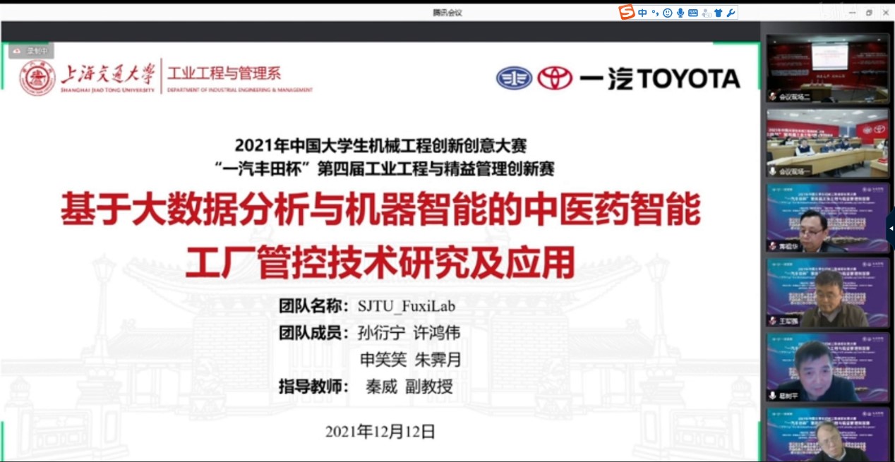 12月12日,2021年中国大学生机械工程创新大赛“一汽丰田杯”第四届工业工程与精益管理创新赛总决赛举行,买球官网工业工程与管理系研究生组斩获一等奖,本科生组斩获三等奖。