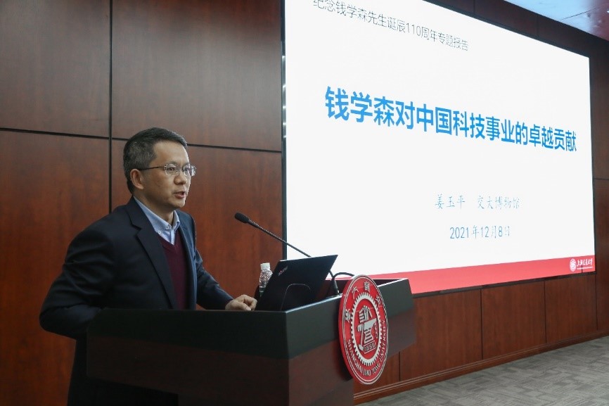 校博物馆中心藏品管理室主任姜玉平从“杰出的技术科学家”、“对新中国科技体系建设的贡献”两个方面,作《钱学森对中国科技事业的卓越贡献》专题报告。大家深入了解了钱学森的生平历程,对钱学森的贡献与人格有了更清晰的认识,对自我有了更明确的要求。