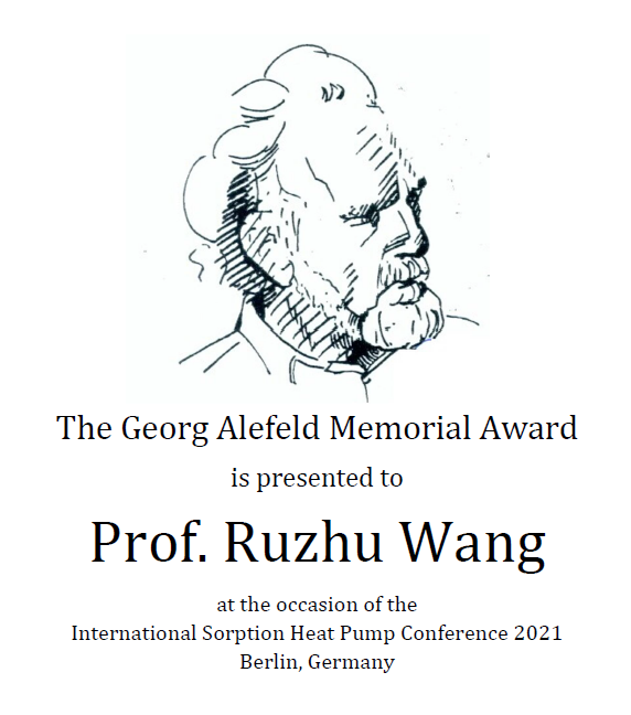 Georg Alefeld Memorial Award于1996年由国际吸收吸附热泵大会科技委员会设立,奖项以德国慕尼黑工业大学的Georg Alefeld教授命名,旨在纪念他对吸收式热泵技术的杰出贡献。此前的获奖者包括以色列理工学院Gershon Grossman教授(2008)、柏林工业大学能源讲席教授Felix Zigler (2014)、日本东京工业大学特命教授-名誉教授柏木孝夫(Takao Kashiwagi)(2017)等。