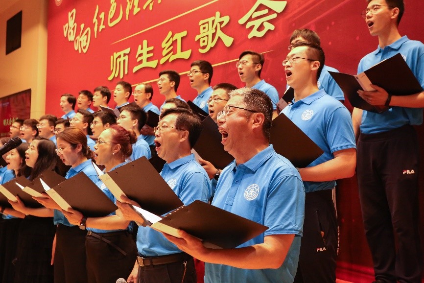 回首百年,红色的歌声清脆嘹亮;展望当下,吾辈的呐喊慷慨激昂。6月2日,学院举办“唱响红色经典,颂扬百年辉煌”师生红歌会,19支队伍共计近700人参加了活动。活动分为“赤城·曙光”“蓬勃·新生”“砥砺·征程”“辉煌·新篇”4个篇章,曲目融入朗诵、乐器等形式,唱响红色经典,深情歌颂中国共产党100周年的光辉历程。《没有共产党就没有新中国》《保卫黄河》等回望了风雨如晦的岁月里,中国共产党人满腔热忱,碧血丹心,为中国革命事业不懈奋斗的崇高理想。《歌唱祖国》《中国,中国,鲜红的太阳永不落》等表达了师生颂党恩、跟党走的心声,抒发了对祖国、家乡的热爱之情。《党啊,亲爱的妈妈》《在灿烂阳光下》等体现了奋进征程中,中华儿女劈波斩浪,踏浪前行的勇气和信心。《我爱你中国》《爱我中华》等展现出师生逐梦新时代的豪情壮志。