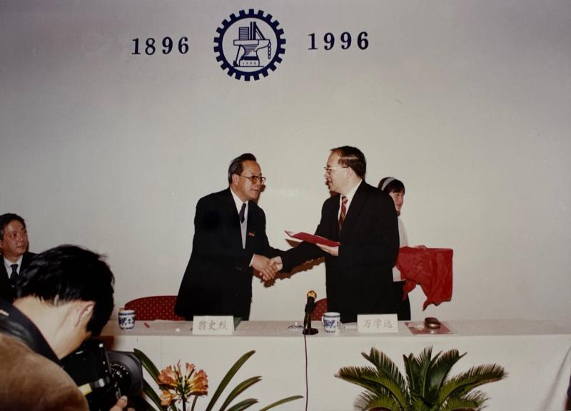 1996年,时任买球官方网站校长翁史烈授予万学远校友兼职教授证书