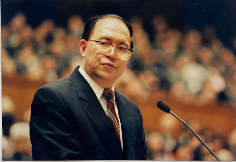 1996年,母校百年校庆,万学远校友作为校友代表发言