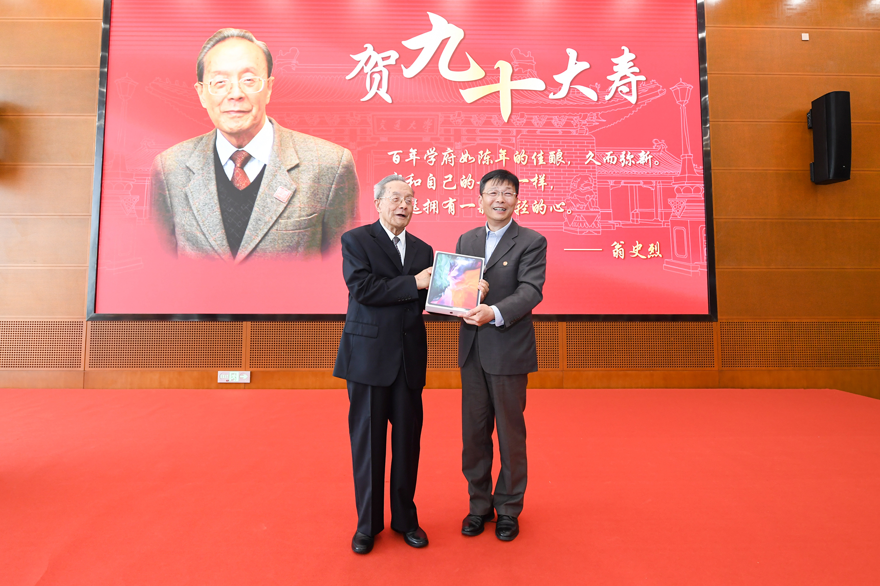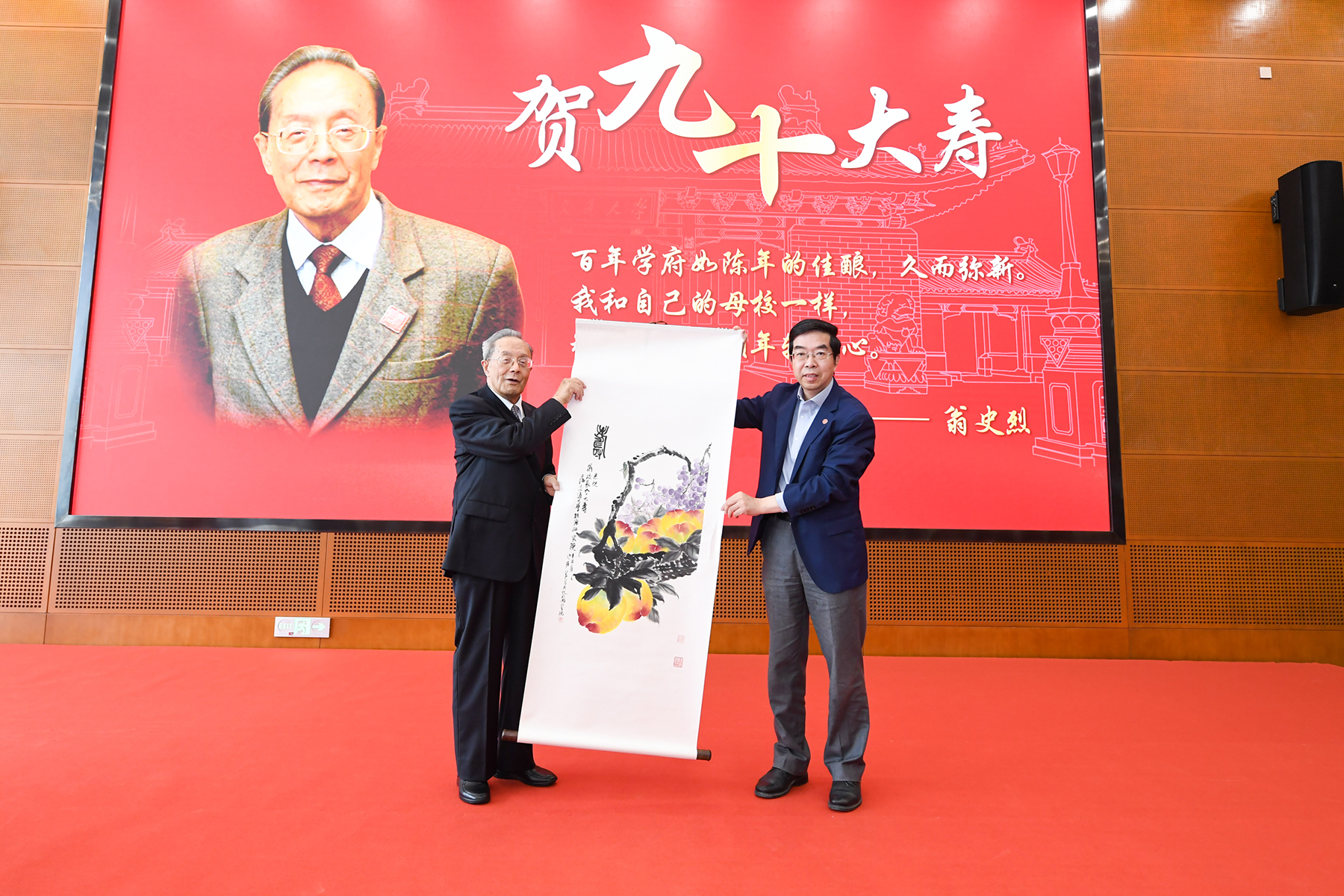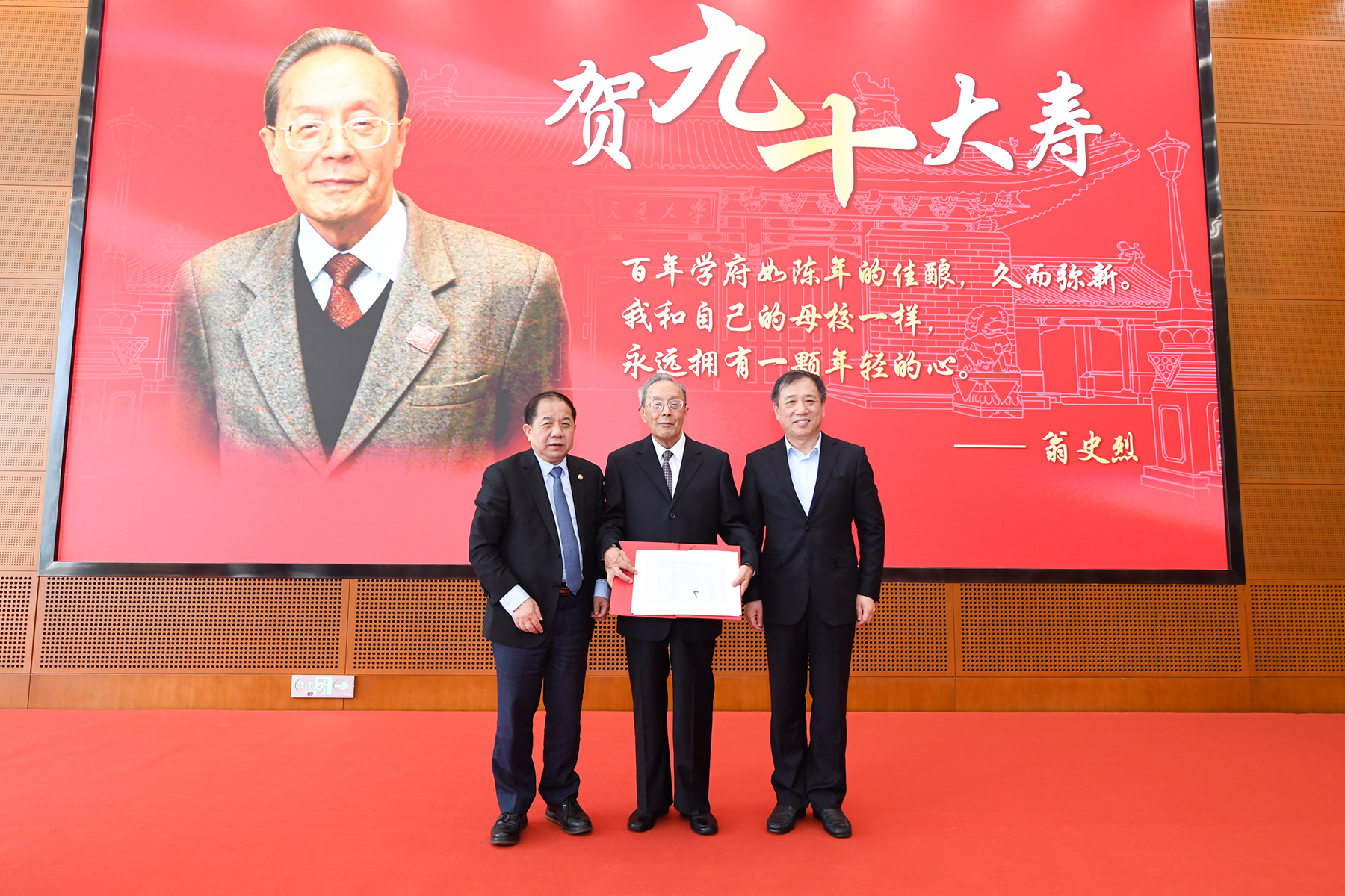 “百年学府如陈年佳酿,久而弥新。我和母校一样,永远拥有一颗年轻的心。”翁史烈对大家的关心和祝福表示衷心感谢,他回顾了自己从1949年进入交大72年来感受到的深刻变化,对学校在党的教育方针指引下取得的辉煌成绩表示高兴和自豪,对学校办学空间、学科体系、师生精神状态的巨大变化深感欣慰,并期待学校勇立潮头、为一流大学群体建设、为国家高质量教育体系建设作出新的重要贡献。