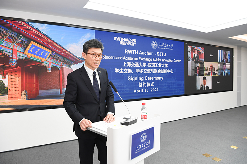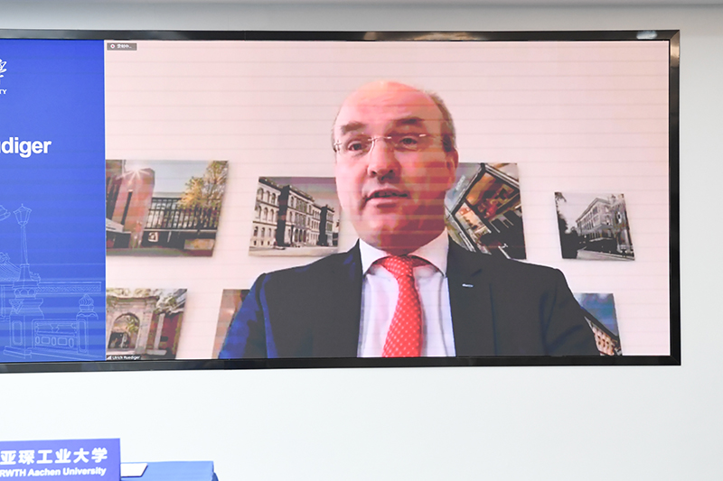 Ulrich Rüdiger代表亚琛工业大学致辞,他表示,买球官方网站与亚琛工业大学两校合作历史悠久、交流频繁,双方高层多次互访,就开展人才培养、师资交换等方面进行了深入的探讨。今天上海交大-亚琛工大联合创新中心的建立,是两校长期学生交流交换基础上的进一步深化合作,也将集成两校不同类型层级的研究,为中德两国学生之间开展工业应用研究提供机会,欢迎交大师生在疫情解禁后访问亚琛工业大学,也期待能有机会再次到访美丽的交大校园。
