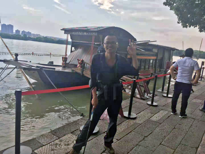 国庆当日艳阳当头,让我头天晚上被打湿的一身闷热难耐,过了中午脚似乎磨出了水泡,全身酸疼,软得似橡皮糖。我把手交替着缠在登山杖上,“三条腿”一瘸一拐背着包继续走。有个两次碰见我的骑电动车的大叔就鼓励我,我决定打死也不放弃,一定要到达南湖。最终,在部分路段借助共享单车的情况下,我在国庆当天下午四点左右和红船站在了一起。