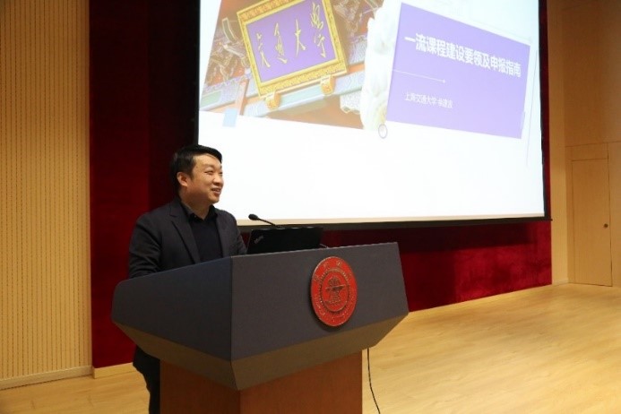 余建波作“一流课程建设要领及申报指南”专题报告,从建设要领、评审指标、填表指南、附件准备以及教学设计等方面详细介绍了一流课程建设及申请,解读了课程建设要点,为教师建设及申报一流课程提供了指导性意见。