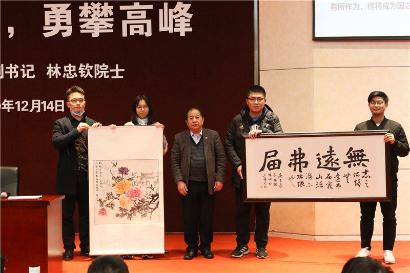 林忠钦寄语同学们,唯有与祖国同行,才能成就卓越人生,希望大家树立崇高志向,以长远眼光,坚持学术追求,勇攀科学高峰,成就伟大事业;磨炼求真、务实、严谨、开放的品格,不断提升个人综合能力,培养跨学科领域整合能力和应用能力;脚踏实地,持之以恒,努力成长为国家栋梁之才。