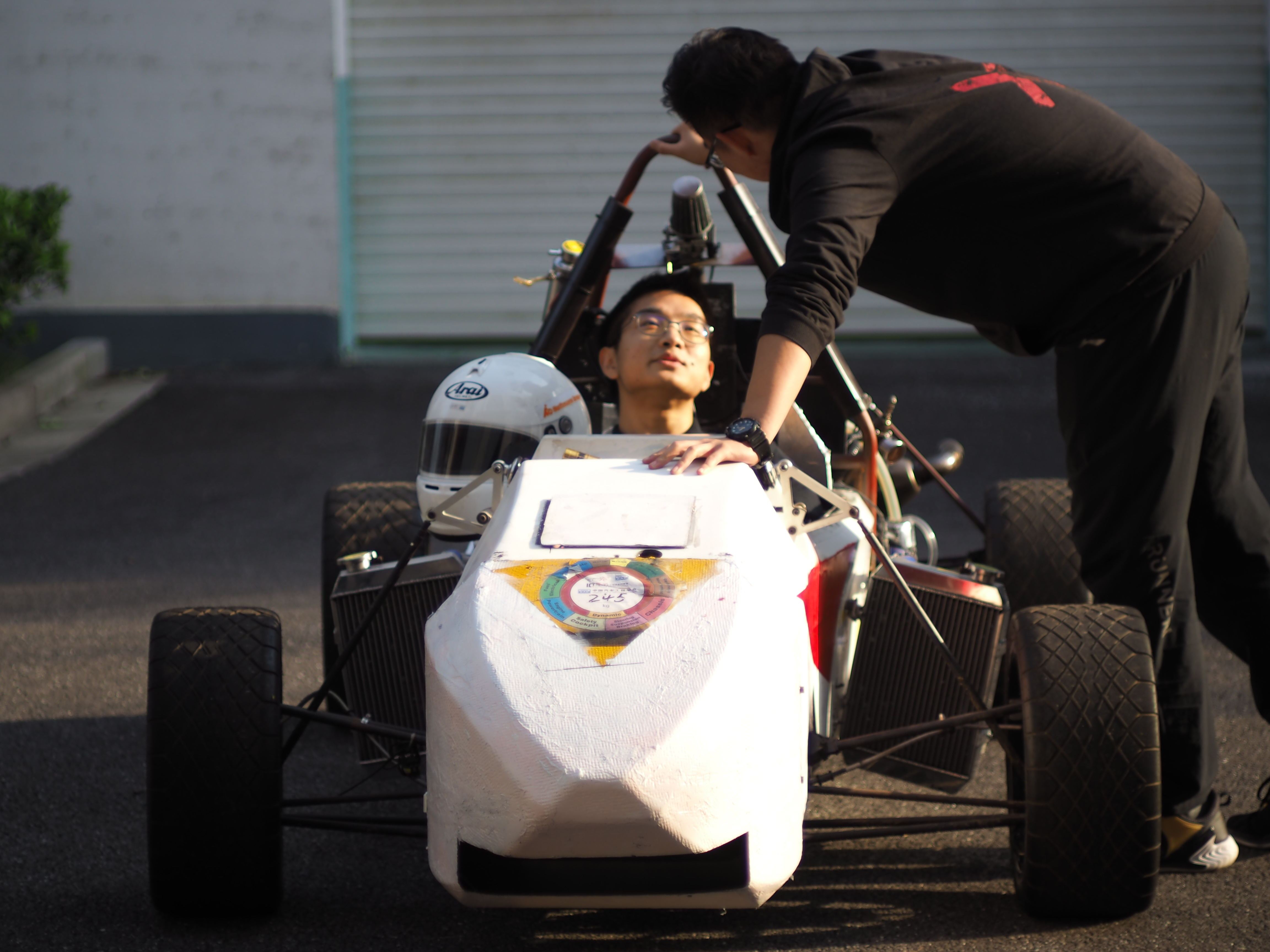 忧急无用,魏峥带着队员按照现场规则一处一处修改完善,未准备到的材料就临时跑出去买,或向其他赛车队商借。队内没有会焊接的同学,他们向其他赛车队寻求支持。