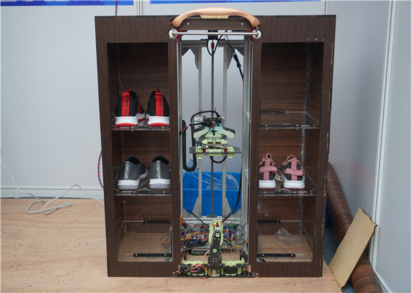 项目成员在生活中发现,老年人弯腰穿鞋存在困难,同时,弯腰动作本身具有安全隐患。项目团队设计出一款具有辅助穿鞋功能的智能鞋柜,利用三自由度取鞋平台、仿足形臂、柔性穿脱鞋辅助装置,具备对鞋的储存、抓取、运输、穿脱鞋辅助功能,帮助老年人直立取鞋、直立穿鞋、放鞋。项目成员利用专业知识,结合实际生活,为老年人的生活提供便捷,解决了老年人弯腰穿、脱鞋不便的问题。