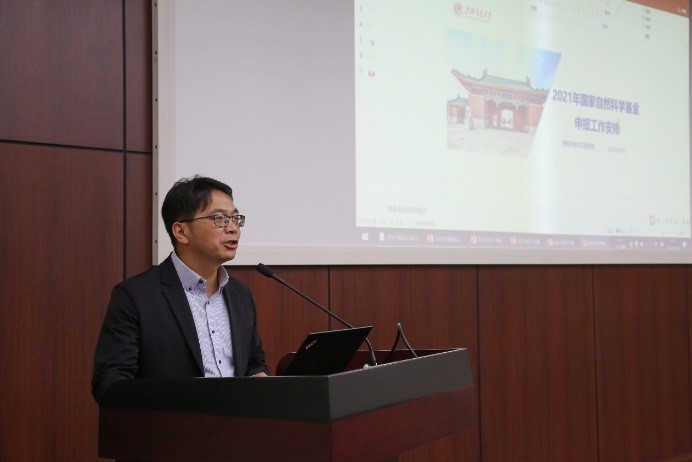 盛鑫军介绍了学院2020年度基金资助概况,重点分析了各学科的申报及立项情况,同时对2021年申报工作进行了分析与展望。