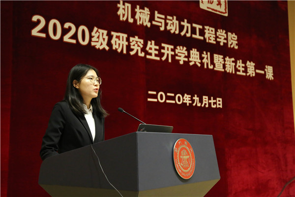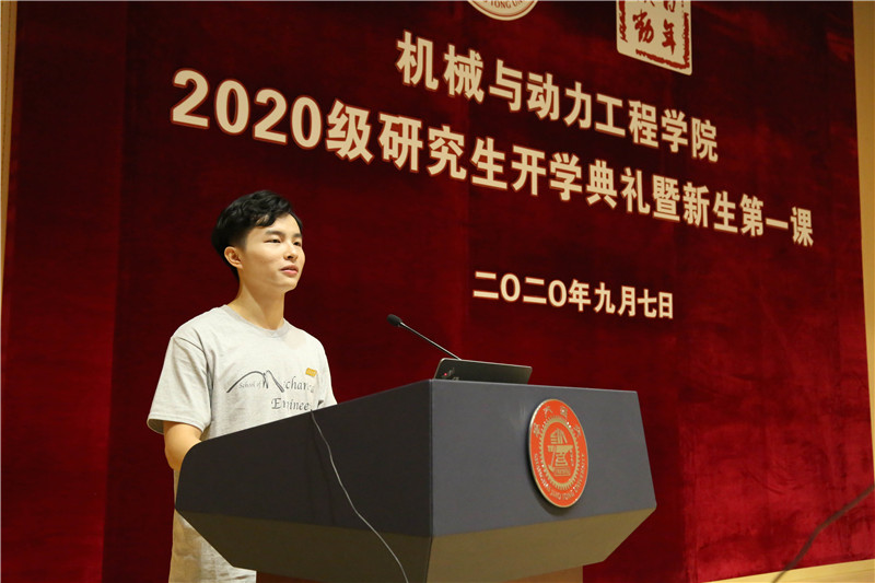 2020级博士生徐蔚云代表全体新生发言。他表达了新生入学的憧憬和感悟,号召同学们爱国荣校,兼济天下,承担自己的社会责任,将个人发展融入祖国的建设。
