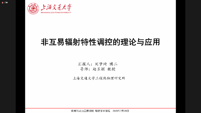 工程热物理研究所2018级博士生刘梦琦围绕“非互易辐射特性调控的理论与应用”,从可重构定向辐射调控入手,将磁光效应引入多极子干涉,发现多极共振的相位/振幅调控机制,实现可重构的光学开关设计和反/透射动态调控;介绍了电偶极诱导横向Kerker散射的原理,利用单层MO-ENZ材料的非互易发射/吸收特性与双层结构的非互易发射/吸收特性,打破热辐射的基尔霍夫定律,实现全角度吸收抑制发射增强,将外加磁场降低2个数量级。