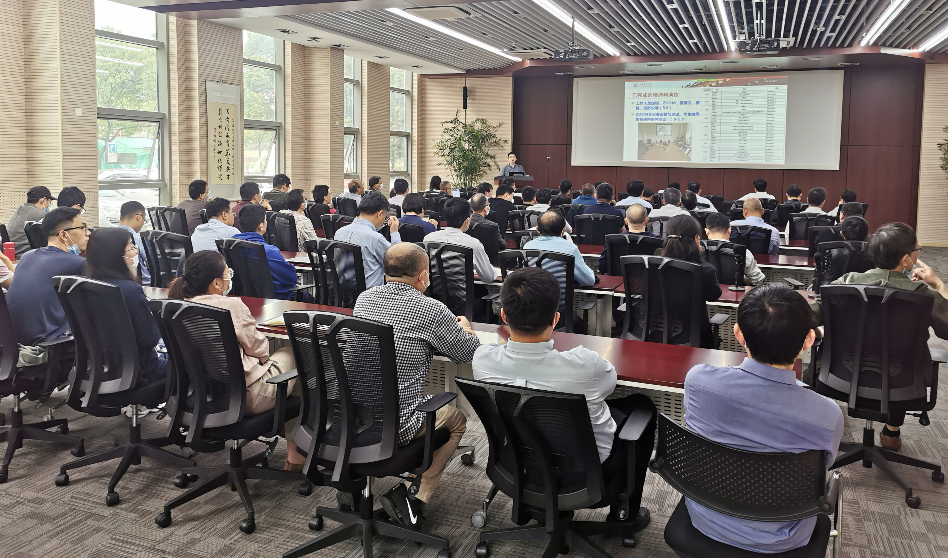 5月6日,学院组织了工作培训会,进行了复试工作流程、秘书工作内容、远程复试软件使用指导、复试设备连接等工作培训。