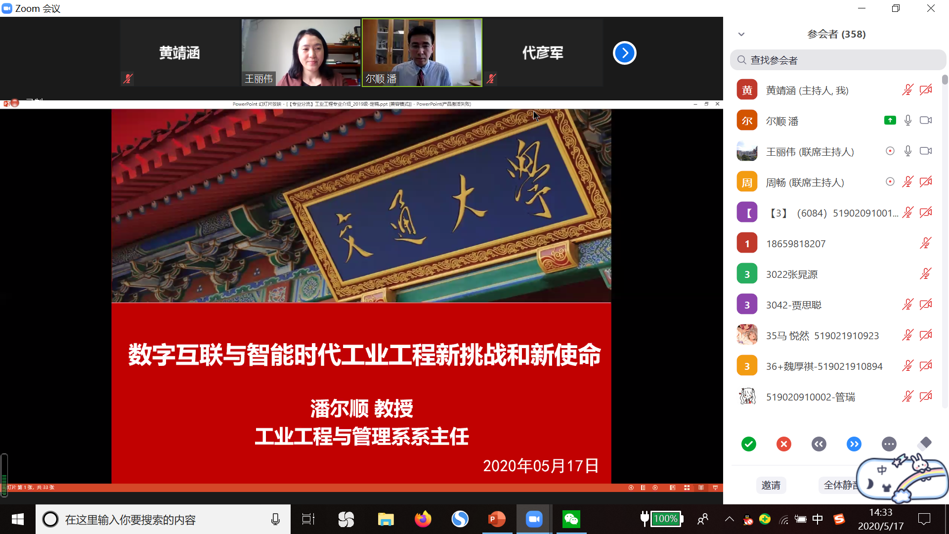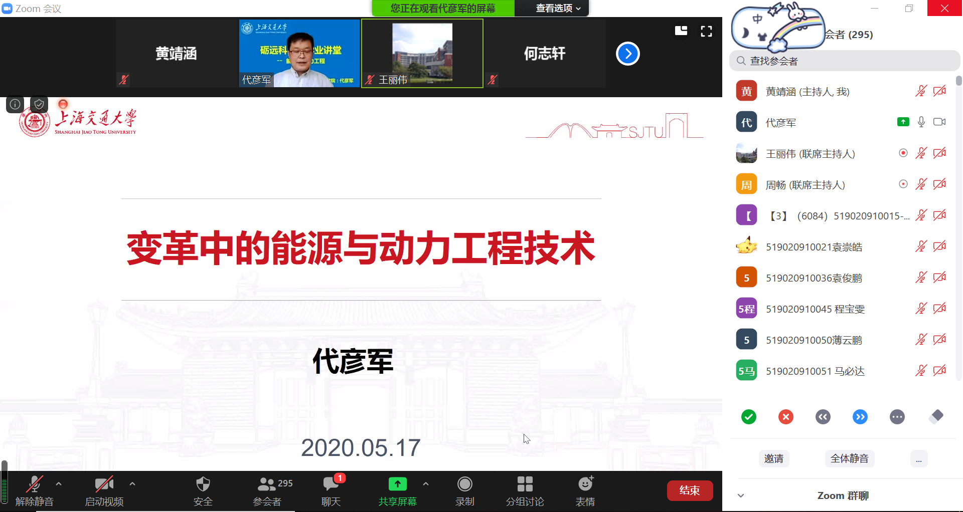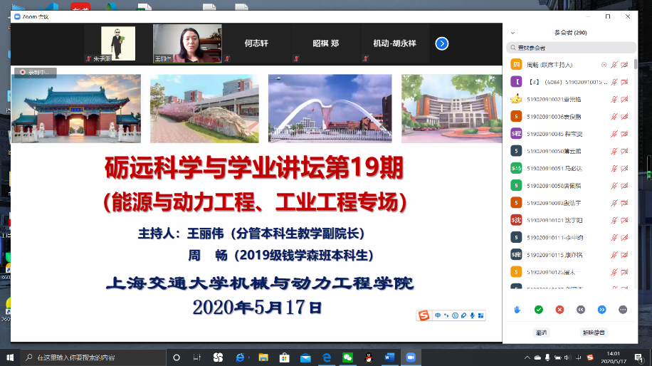 5月17日,买球官方网站线上举办第十九期砺远科学与学业讲坛。动力与能源工程系主任代彦军教授,工业工程与管理系主任潘尔顺教授分别做主题报告。活动由学院副院长王丽伟、2019级本科生周畅主持,2019级全体本科生参加了此次活动。