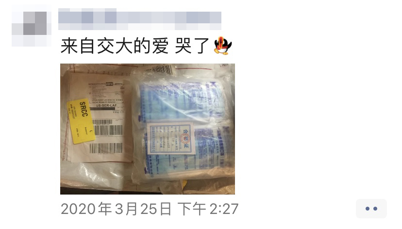 海外学子收到防疫物资后,纷纷表达了对学院的感谢,表示将认真做好个人防护,保持良好的心态,展现“交大人”的责任和担当,用自身的平安换祖国亲人心安。
