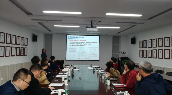 院长助理王倩就2018-2019年度全英文课程评估与建设情况进行了汇报。学院通过教师听课、调查问卷、学生座谈、总结梳理的方式,对学院秋季学期13门全英文课程进行了评估:数据显示80%以上的授课老师讲述流利,课程选用经典全英文教材和参考书目、内容设置饱满;学生对教师的英文水平比较认可、整体满意度较高,普遍感觉对英语水平、专业术语等方面有较大提升,并提出语言障碍是全英文课程学习的首要难点;课程在课堂组织、课堂学生关注度和参与度、课程内容难度、课程容量等方面存在进一步的提高空间。学院后续将以“模块化、分类别发展”为全英文课程建设思路,以“督促、反馈、提高”抓存量、“宣传、引导、把关”促增量为抓手,进一步推进学院的全英文课程数量及质量内涵建设。