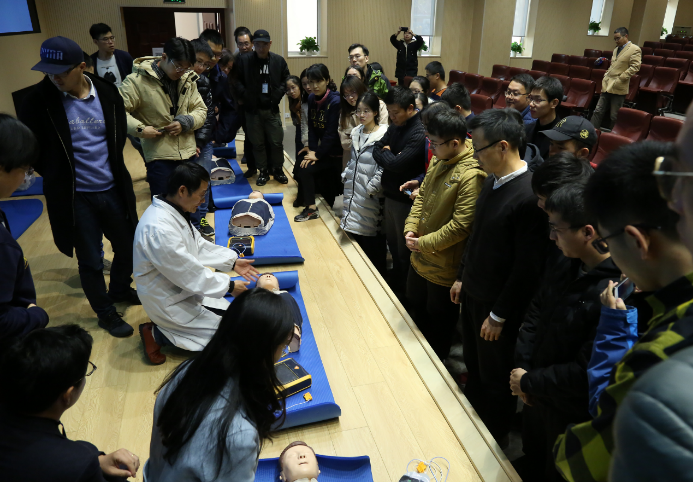 12月2日,买球官方网站邀请校医院院长刘金生对师生开展心肺复苏(CPR)、除颤仪AED、烫伤、冻伤、灼烧常见等防护与急救安全培训,提高师生应急急救能力。