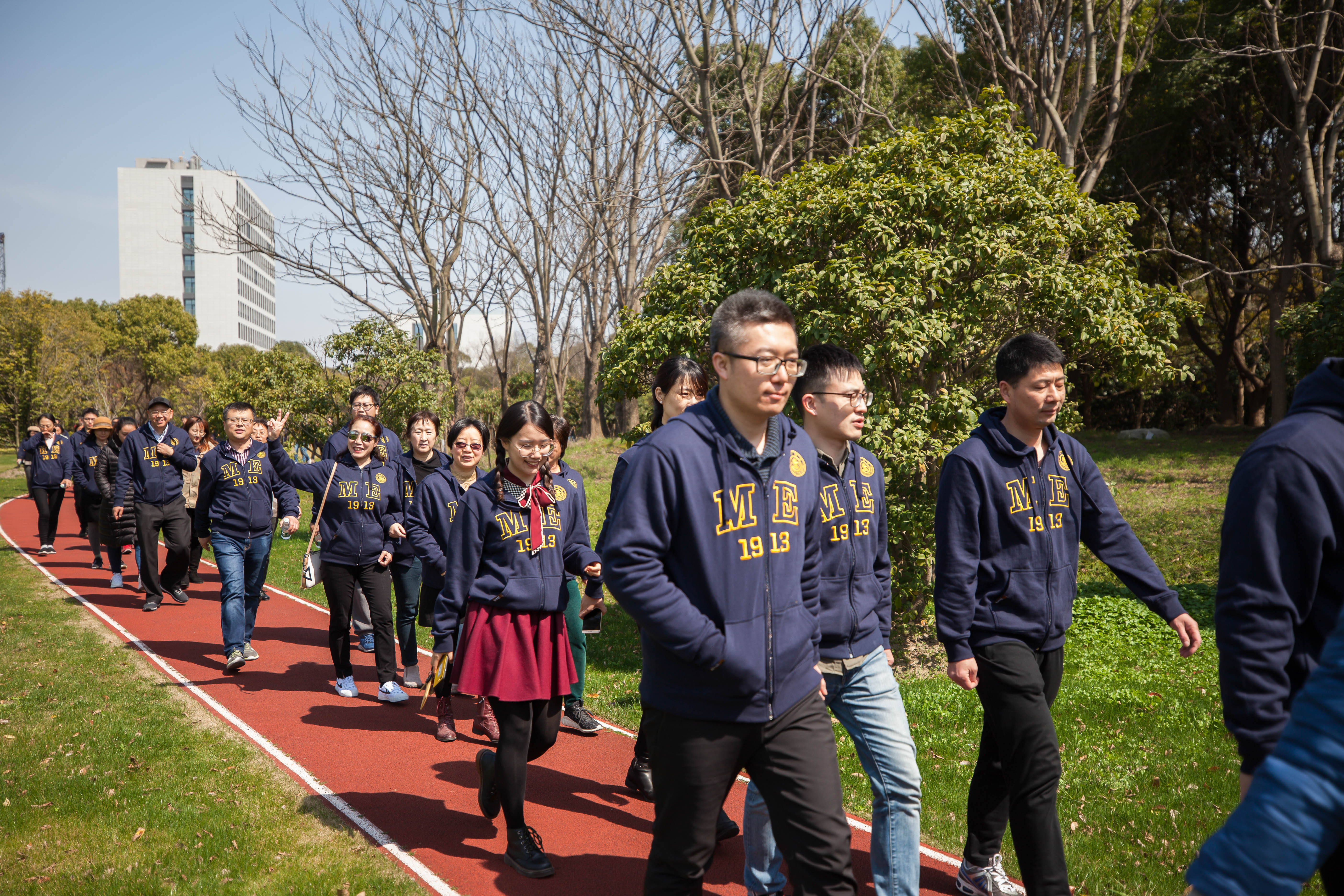 春光明媚,大地回暖。大家身着蓝色院衫,用脚步丈量校园,用心灵感受自然,享受健康运动带来的快乐,一路欢声笑语,畅谈理想未来,交流生活感悟,为春日的校园增添了一道亮丽的风景线。