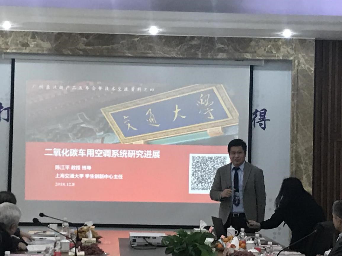 12月8日,制冷与低温工程研究所陈江平教授领衔团队自主研发的国内首台轨道交通CO2列车空调发布。合作方北京鼎汉技术股份有限公司总部领导、广州鼎汉团队,及国内主要轨道交通主机厂代表参加了鼎汉集团新产品发布暨技术交流会。
