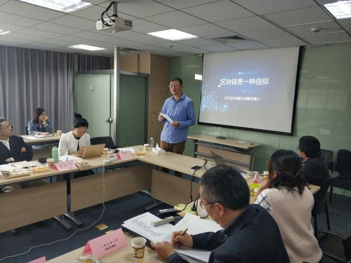 明新国教授及其课题组成员介绍了目前承担的区块链课题研究情况,指出目前研究中发现的上海市区块链发展瓶颈和问题,并提出相应的建议和措施。