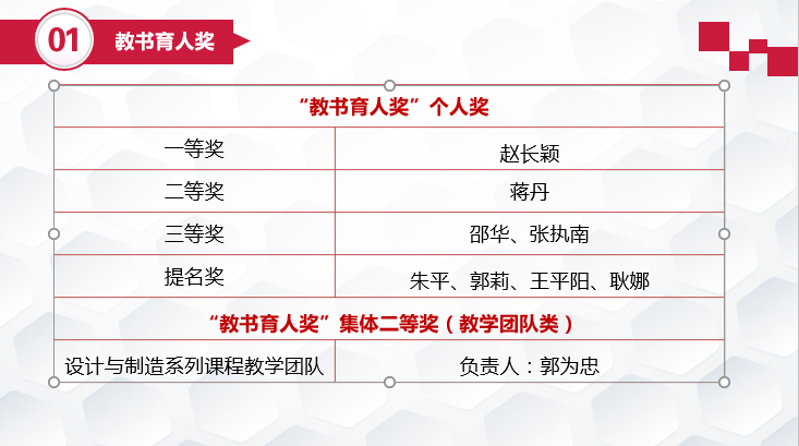 作为学校人才培养的校级最高荣誉,“教书育人奖”重点表彰在学校“立德树人、教书育人”工作中做出突出贡献、在推动学生“教育增值”上起到示范引领作用的优秀教师。“科研成果奖”主要表彰为学术研究、服务国家重大需求等方面做出突出贡献的优秀教师。该奖的设立旨在增强广大教师“立德树人、教书育人”的责任感和荣誉感,鼓励广大教师进行科研创新,在全校形成爱岗敬业、奋发向上的工作氛围。