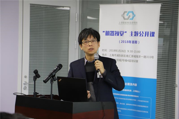 1月26日,瑞雪初停,上海智能制造研究院举办的2018年首期“机器视觉主题公开课”在临港开讲,来自临港及周边地区的30多家企业70多位代表参加了此次培训活动。