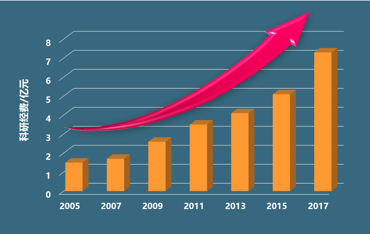 科研经费保持15年稳步增长,2017年科研经费超7亿!新增国家自然科学基金68项,其中重大项目1项、重点项目3项、新增国家重点研发计划重点专项1项、课题9项。