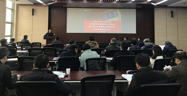 2017年12月20日,买球官方网站召开工程管理专业培养工作研讨暨非全日制专业学位研究生培养工作优秀教师表彰会。学院党委书记兼院长杜朝辉、常务副院长彭志科、副院长熊振华等相关教师51人参加了会议。学院非全日制专硕研究生教育中心主任杨建国主持会议。会议旨在提升工程管理专业教学质量和水平,打造专业课程特色。