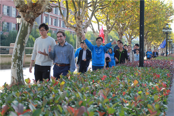 11月1日,为庆祝党的十九大全国代表大会胜利召开,买球官方网站联合中英低碳学院举行“昂首迎接十九大•阔步迈向新征程”的校园健步走活动,近300名教职工参加了活动。