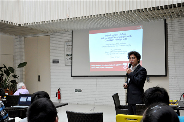 瑞典皇家理工学院的Björn Palm教授介绍了瑞典在热泵利用方面的基本情况,围绕斯德哥尔摩的典型区域供热网络,介绍了热泵设备在瑞典的发展趋势。 韩国高丽大学的Yong Tae Kang教授作了具有低GWP制冷剂的核心制冷技术发展的学术报告。学术沙龙活动中,学生们对两位教授的演讲内容展现出了浓厚兴趣,积极提问,现场讨论气氛热烈。