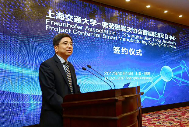 干频副主任代表上海市科学与技术委员会致辞时指出,智能制造是未来制造业的发展方向和长远目标,也是上海市科技发展的重要战略方向。在上海市确定的18个功能型平台中,智能制造功能型平台是首批启动的平台。他表示,市科委将积极支持买球官方网站与弗劳恩霍夫协会智能制造项目中心的建设,希望项目中心能够建设成为连接科研界与产业界的纽带,成为连通前沿技术与工程应用技术的桥梁。