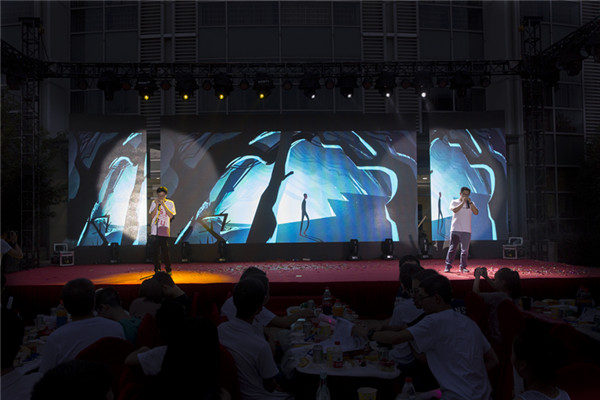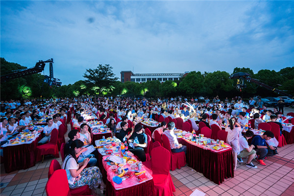 四年时光如列车飞逝,大家在歌曲串烧《四年列车》中举杯高唱。悠扬的口琴引领毕业生回忆起大学四年的精彩与激情;一曲深情的《在路上》,祝愿毕业生梦想开放;甜蜜苦涩的《恋爱未满》道出了对青春的怀念和别离的不舍,神秘嘉宾学生们的“怡凡姐”的登场更让同学们欢呼不已。