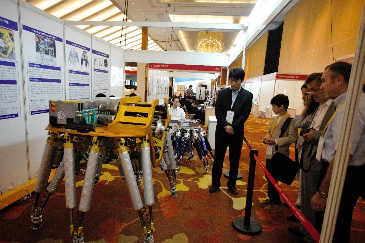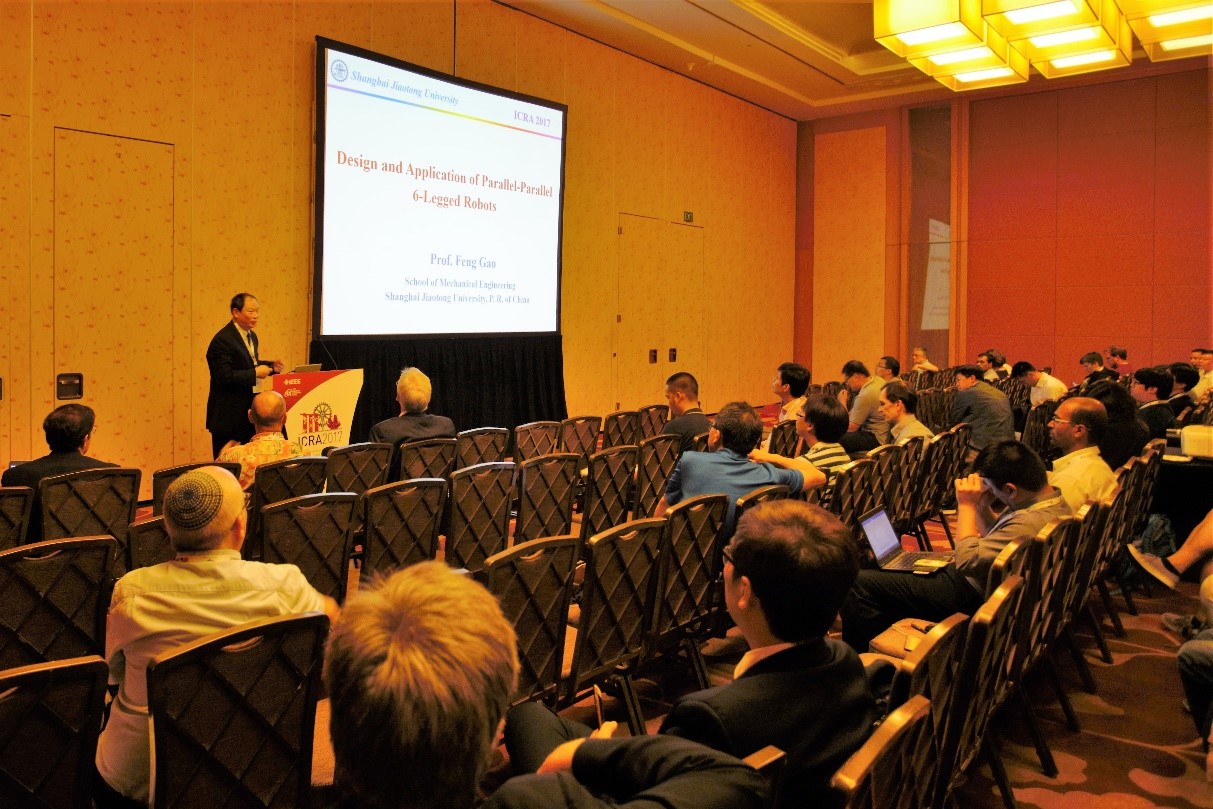 5月29日至6月3日,2017年机器人与自动化国际大会(ICRA 2017)在新加坡举行,买球官网高峰教授团队研制的两款新型六足步行机器人亮相大会并引起广泛关注。高峰应邀作了题为“Design and application of Parallel-Parallel 6-legged Robots”的大会报告。