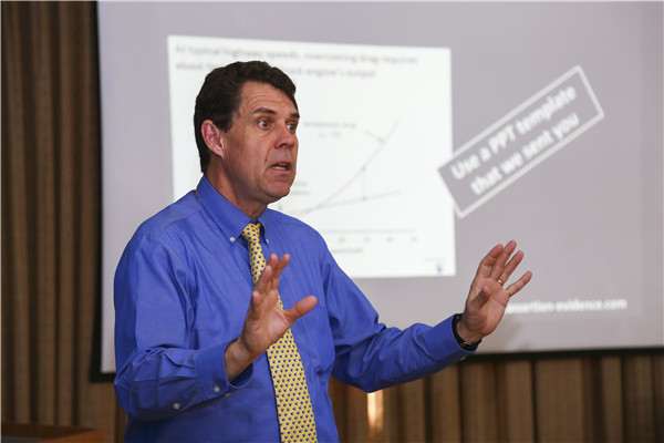 5月15日至19日,美国宾夕法尼亚州立大学副教授Michael Alley及其团队来院开展培训课程,针对中国学生在英语演讲与写作中存在的薄弱环节,系统讲解工程研究领域的英文演讲技巧、论文写作技巧等内容,帮助中国学生提高英语沟通、写作和表达能力。学院35名研究生参加了培训。